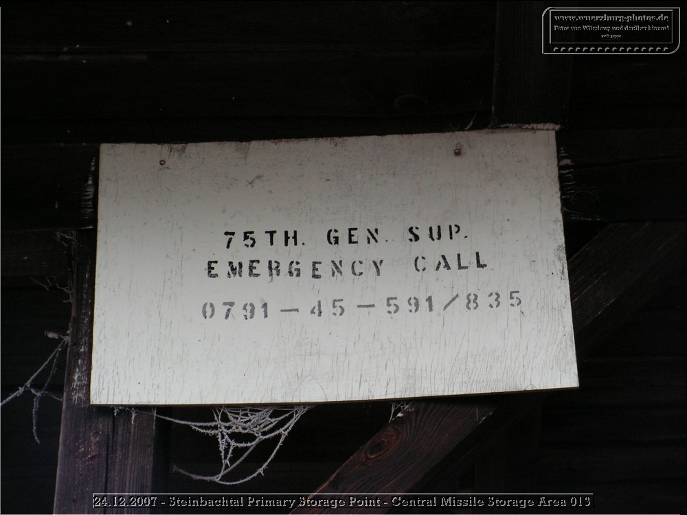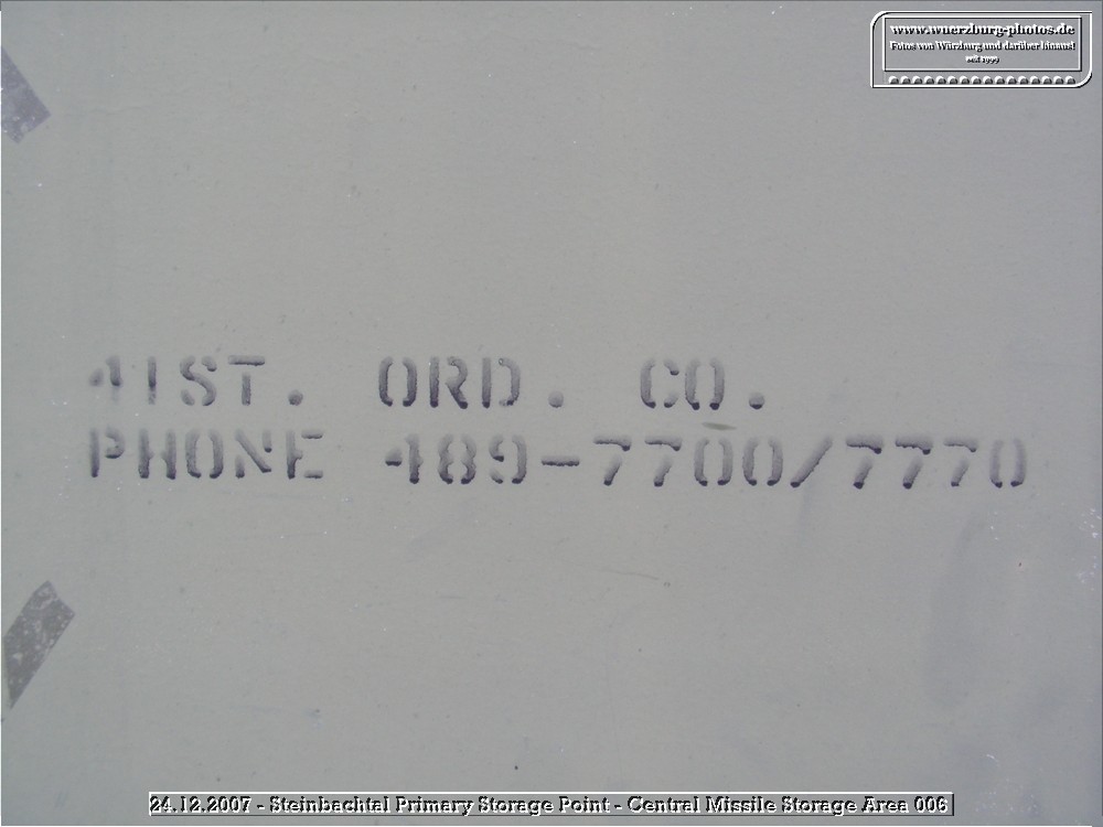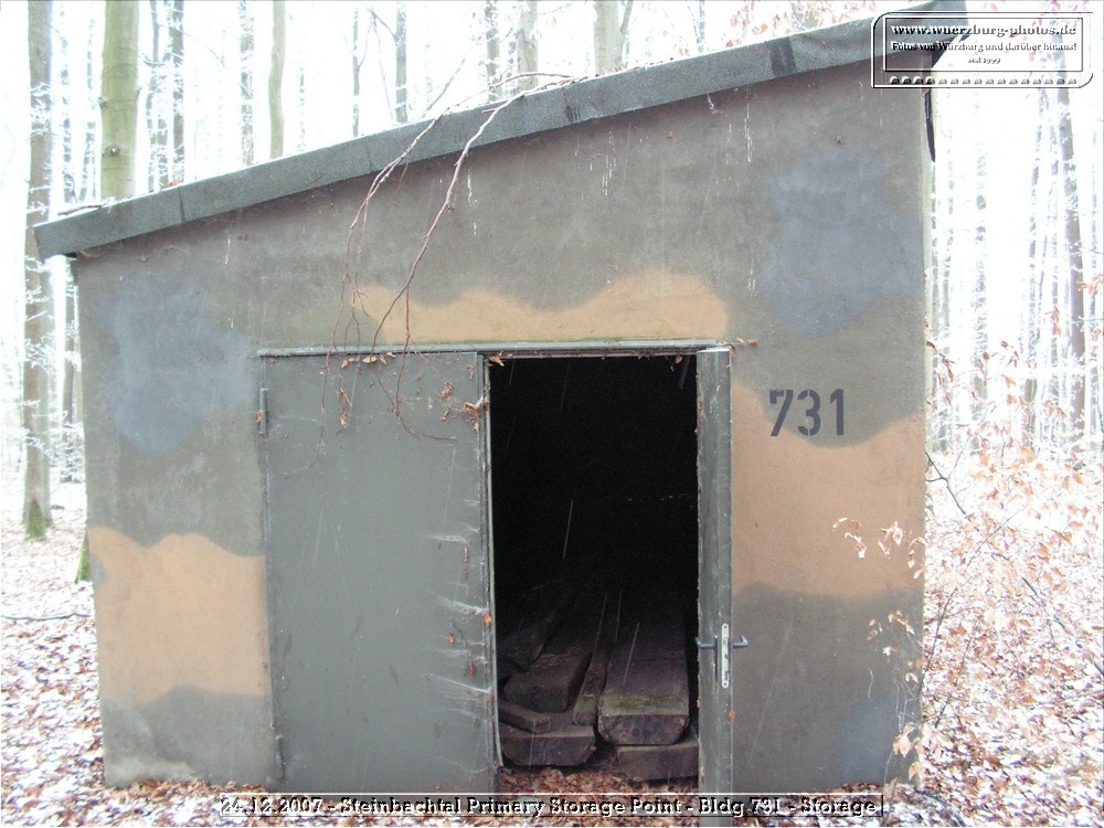 The Steinbachtal PSP (Primary Storage Point) of the US Army in Würzburg played a significant role during the Cold War. It served as a storage facility for conventional ammunition and was expanded in the 1980s to include the Central Missile Storage Area of the 8-43 ADA (Patriot, Giebelstadt).
