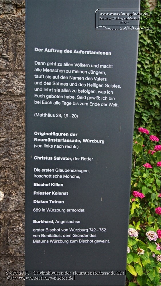 Er ist bekannt für seine zahlreichen Heiligenfiguren, u.a. auch die Originalfiguren der Neumünsterfassade Christus Salvator, Bischof Kilian, Priester Kolonat, Diakon Totnan und Burkard, die den Garten schmücken und eine spirituelle Atmosphäre schaffen. Diese Figuren laden Besucher ein, innezuhalten und über das Leben und den Glauben nachzudenken.