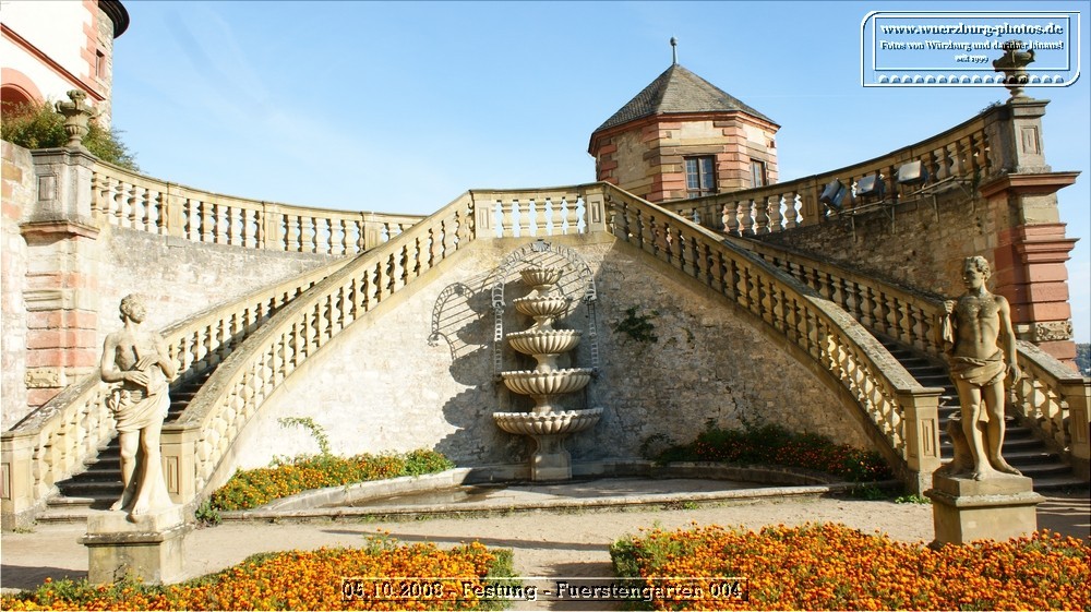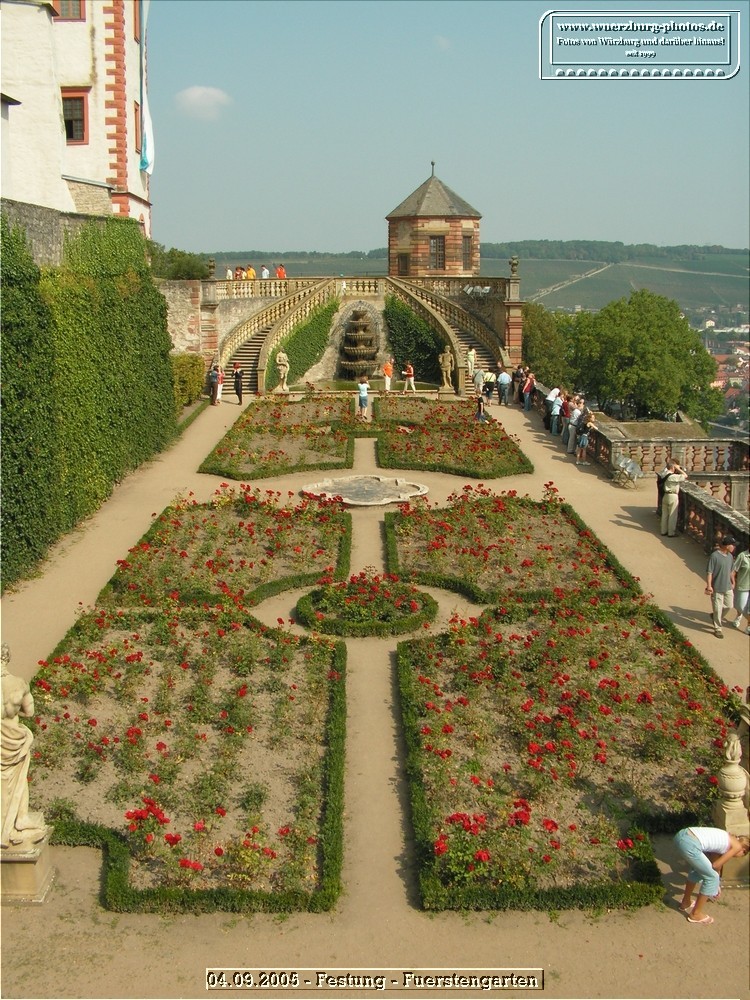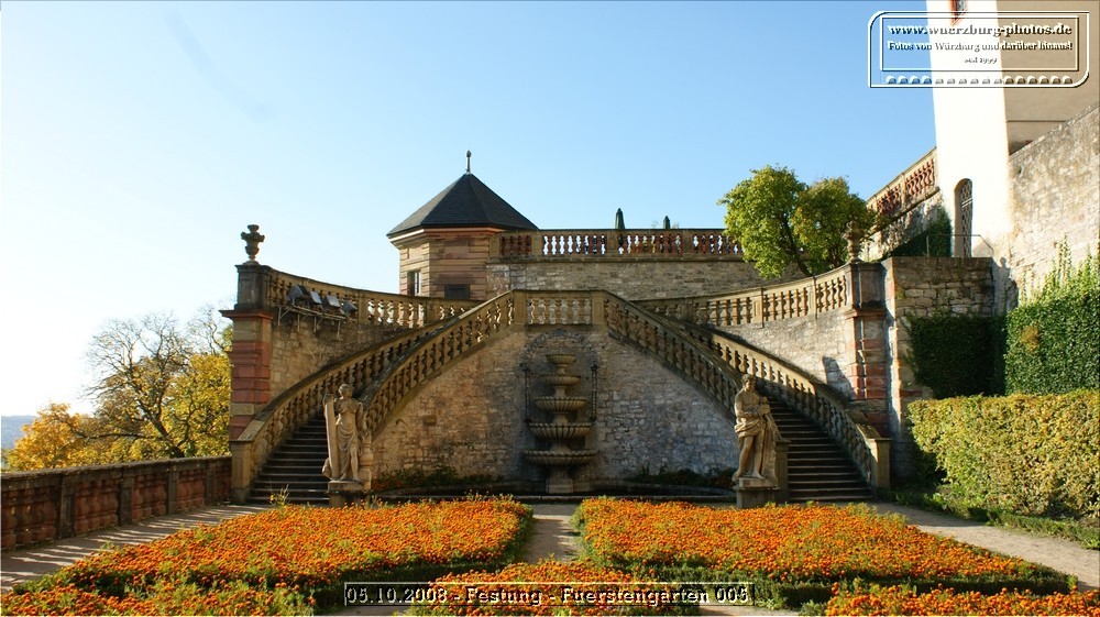 Der Fürstengarten der Festung Marienberg ist eine barocke Terrassengartenanlage mit kunstvoll angelegten Beeten, historischen Mauern und einem der schönsten Ausblicke über Würzburg. Die ruhige Gartenarchitektur verbindet Natur und Geschichte und macht den Fürstengarten zu einem beliebten Ort für Spaziergänge, Fotomotive und entspannte Pausen hoch über der Stadt.