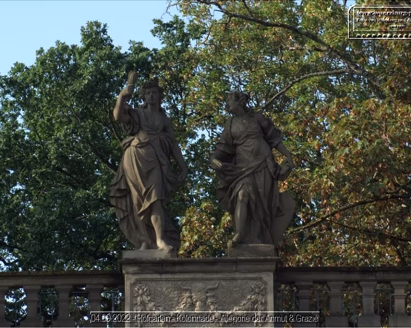 Die barocke Kolonnade am Gesandtenbau beeindruckt mit ihren fein ausgearbeiteten Skulpturen, allegorischen Figuren und der repräsentativen Fassadengestaltung des 18. Jahrhunderts. Das historische Arkadenensemble bildet einen markanten Teil des Residenzumfelds und zeigt die kunstvolle Architekturplastik der Epoche.