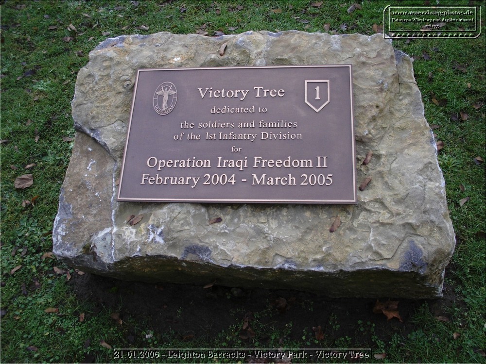 Im Juli 2008 wurde im »Victory Park« der Leighton Barracks zum letzten Mal die Fahne der 1. US Infantry Division eingeholt. Die Soldaten der »Big Red One« verlegten ihren Standort zurück in die Vereinigten Staaten. Auch die verschiedenen Statuen und Monumente wurden mitgenommen. Geblieben ist die kleine Grünanlage, die von den Amerikanern angelegt wurde. Mit ihrem Baumbestand bildet sie ein Kleinod auf dem großen weiten Gelände des ehemaligen Flugfeldes.
